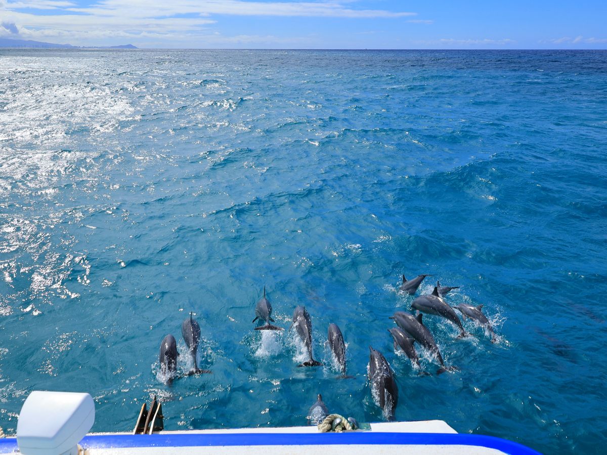 イルカ大学 イルカウォッチング&シュノーケリングクルーズ イルカと泳ぐプランも!マリンアクティビティも充実<ランチ付き/日本語/ワイキキ&コオリナ送迎可>
