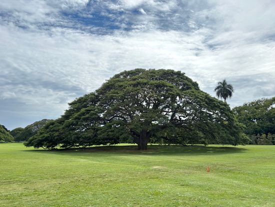 樹齢130年を超えるモンキーポッドの大木は、日本では電機メーカー日立製作所が宣伝する「日立の樹」としても有名です。