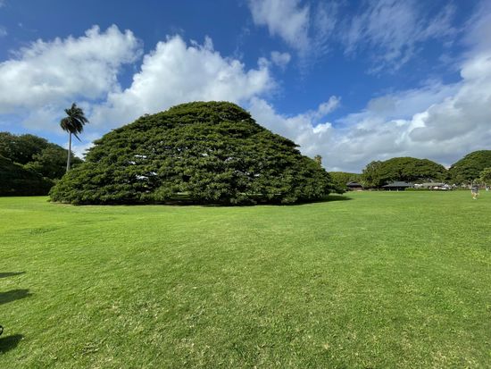樹齢130年を超えるモンキーポッドの大木は、日本では電機メーカー日立製作所が宣伝する「日立の樹」としても有名です。