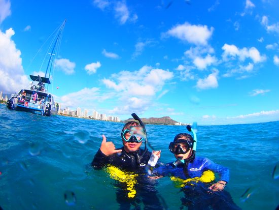 ウミガメシュノーケリング 少人数制&日本語インストラクターがサポートで安心!水中写真付き ワイキキ送迎可<3時間/ケワロ港発>by アロハナダイバーズ
