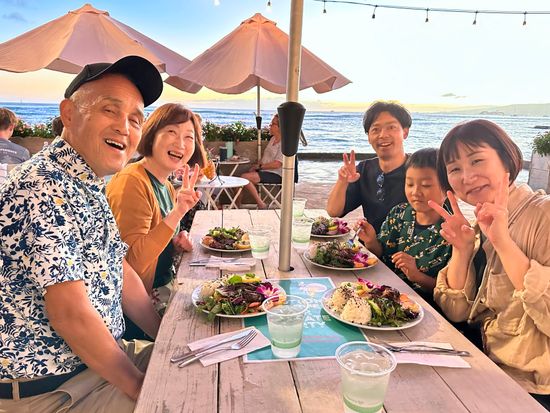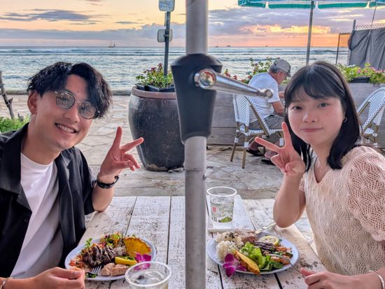 生演奏を聴きながら、穴場ハワイ限定のディナープレートと夕暮れ時の美しい景色をお楽しみください。