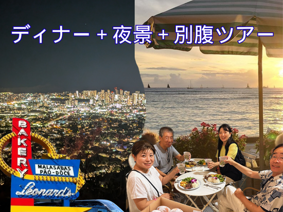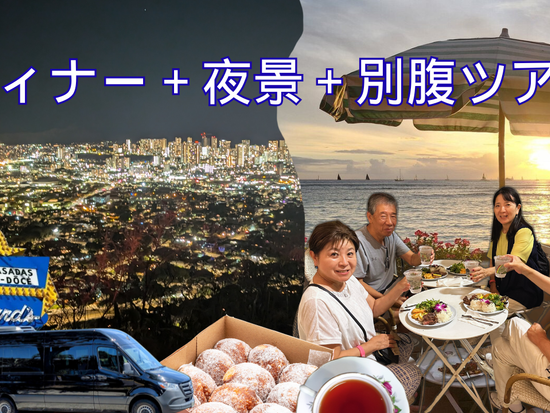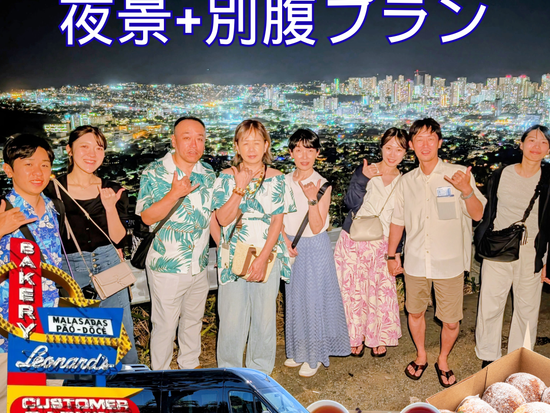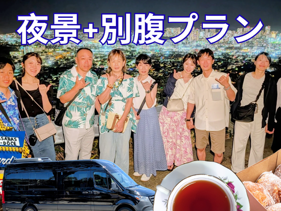マラサダ&ハワイアンティーを楽しみながら夜景観賞と記念撮影