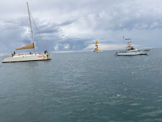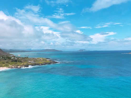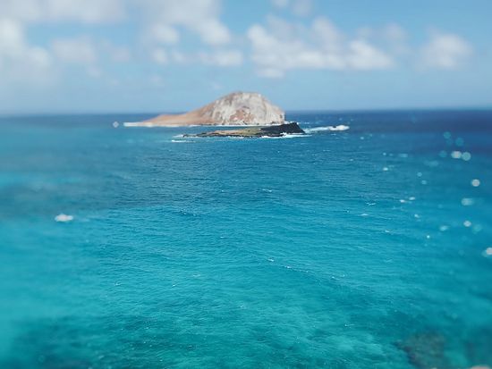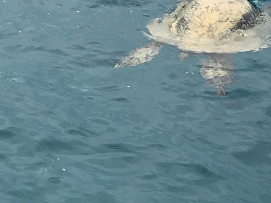 ハイライトはクルージング中に泳いでいるホヌに初めて出会うことができたこと。かなり近くまで何度も何度もクルリクルリと船に寄って来ては、風をきって走る船の右へ左へと、一緒に泳いでくれました、写真はさようならの場面です。甲羅の白いホヌで、マカプウ岬のラビットアイランドみたい。幸運に感謝します!