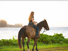 馬の背に揺られ、ワイアルアの海岸線やハワイ最高峰のカアラ山などの美しい景色を楽しめる45分のツアーです。経験豊富なスタッフの同行で馬と触れ合う時間をお楽しみください。2歳から5歳までのお子様にはほぼ実寸サイズのポニーライド体験をご用意。開放的なハワイの牧場の景色と初めての乗馬体験にきっと冒険心がくすぐられるはず。