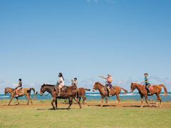 ノースショア地区の入口、ワイアルアエリアにオープンした牧場「ノースショアステーブルズ(North Shore Stables)」で、赤土の荒野からオーシャンフロントまで自然を存分に感じながら乗馬体験(約45分)をお楽しみください。また、ドールプランテーションやハレイワタウンでの観光もお楽しみいただけます。
