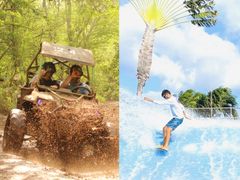 ハワイ唯一のフルサービス野外レクリエーション施設「コーラルクレーター・アドベンチャーパーク」でのスリル満点の四輪バギー(ATV)体験と、こちらもハワイ唯一のウォーターパーク「ウェット・アンド・ワイルド・ハワイ」入場がセットになった、1日思い切り遊べるプランです!人工の波の上でサーフィンができる、フローライダー体験付き♪
