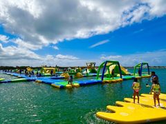 全米最大級の水上アスレチックコースに挑戦! 広大なラグーンに浮かぶ巨大な水上アスレチックコースは年齢に応じて滑り台や飛び込み、バランスゲームなどにチャレンジすることができ、子どもも大人も夢中になれるアクティビティ。