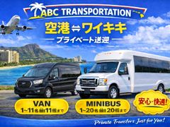 ダニエル・K・イノウエ国際空港(旧ホノルル国際空港)⇔ワイキキ地区ホテル 貸切送迎<24時間受付/1~20名>by ABC Transportation