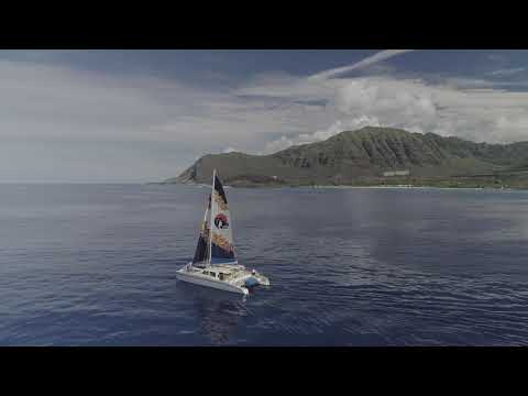 カタマラン船に乗りこみ、いよいよ出港!気持ちの良い風を受けながら、まずはイルカのいるスポットへ向かいましょう。