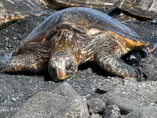 溶岩から長い年月をかけて作られた黒砂を敷きつめた美しい光景を見ることができます。ウミガメが見られることでも有名です。