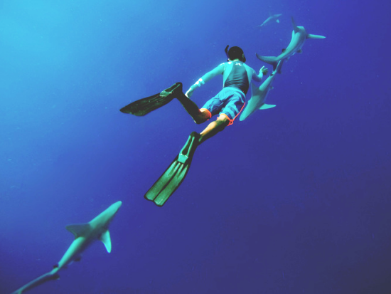 シャークシュノーケリング ケージ無しでサメと泳ぐ非日常体験 <2時間/貸切プランあり/ノースショア発>