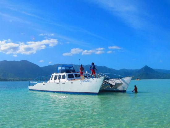 カネオヘ湾サンドバーへのプライベートクルーズ!SUPやカヌー、シュノーケリングなどマリンアクティビティも充実