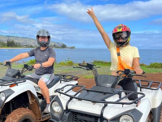 ノースショア・ステーブルズ 四輪バギー体験(45分) バギーでオフロードを疾走+ハレイワタウン自由散策+ドールプランテーション立ち寄り付き!<半日/送迎付き>
