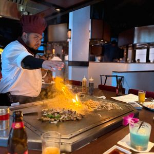 店の雰囲気は良いが、鉄板焼きなのに最初にガーリックライスを提供など、明らかに時間短縮で回転率を上げようとしている姿勢には感心しない、料理の質にもがっかり、8年前にいった紅花オブ東京の方がましだと感じた。この手のパフォーマンス中心の鉄板焼きはサービスと味には期待しない方がよい、エンタメだと割りきるべきかと。