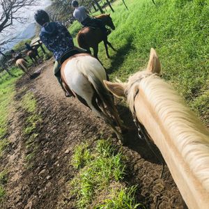 乗馬は日本語の説明ビデオを見て、インストラクターがこの馬に乗ってと指示を出してくれます。勝手に1列になって自然の中を散歩してくれます。同じ時間帯に乗馬していた人の馬がいきなり座りこんだせいか、女性の方が馬から落ちてしまい洋服が汚れてしまっていたので、汚れてもいい服装、スニーカーが良いと思います!