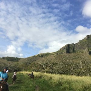 クアロアの雰囲気に馴染んだ後は待ちに待った乗馬です。少し不安もありますが、同じく馬に乗ったスタッフの方が常に馬たちの様子を見てくれてたので安心でした。ヘルメットは共有なので、気になる方は自分のキャップの上からヘルメットを被ったり、マイヘルメットを持参したり出来ます。馬たちは綺麗に手入れされていました。1時間乗るのでお尻が痛くなりました。でも、そんなこと吹っ飛ぶほど乗馬は楽しかったですが、お尻を保護するズボンがあるといいなーと思いました。