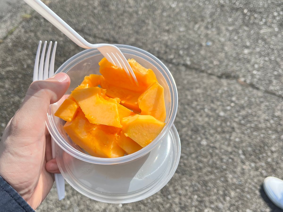 ファーマーズマーケットで新鮮な果物を買い、溶岩の上でランチ。最高でした!
