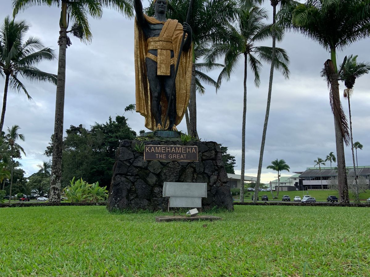 ハワイ島の主要なスポットをバンで回っていただきました。ワイキキからは13名ほどの方がバスに混乗しましたが、ハワイ島からは二つのバンに分かれて7名(3組)だったので何をするにも素早く動けて、写真も撮りやすく、集合時間も3分前にはみんな集合できたのでスムーズに移動できたおかげで、カメハメハ像は車窓ではなく、降りて写真を撮ることもできました!
