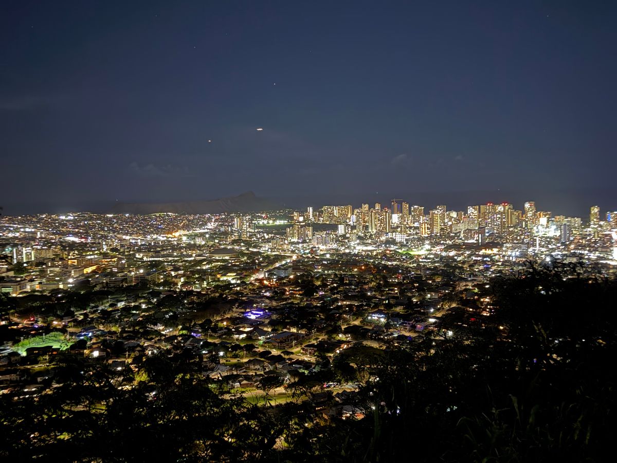 ハワイの街並みと星空の美しさにとても感動しました!キラキラとした街並みとは反対の満点の夜空。最高でした。