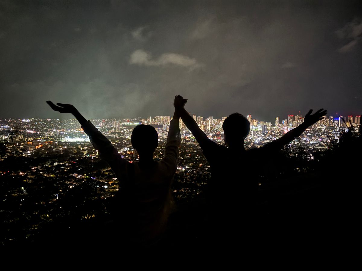 初めてのハワイ旅行で参加しました。まだ薄暗い中を登り、頂上についた瞬間に一気に視界が開けて、海と街並みが朝日に染まる景色に思わず涙が出ました。