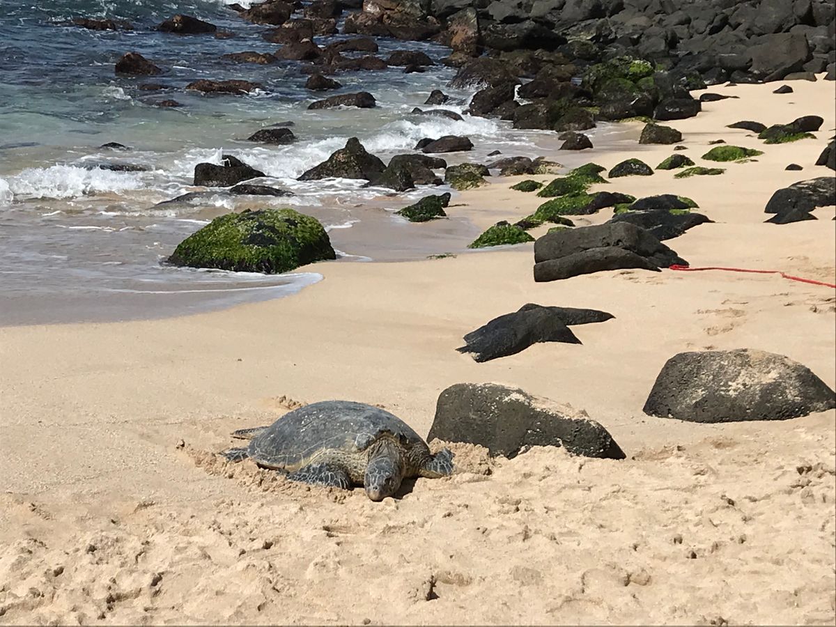乗馬が終わりハレイワに戻り、運が良ければカメさんがいるビーチに行くと