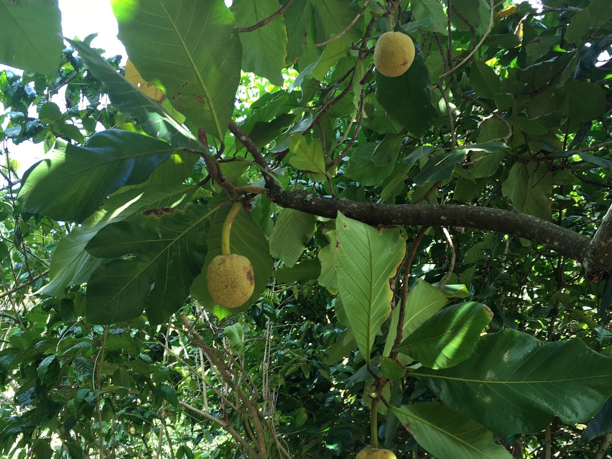 集合場所に1組現れず一旦ぐるっと廻って再度ピックアップというアクシデントで出だしは思いやられましたが、天気は悪かったものの途中の運転しながらのガイドが良かったです。東海岸の景色は曇りながらもまずまず。晴れの時に来たかった。 本命の果樹園は、素朴な建物でしたが、園内を廻りながらで12種類、テーブルを出してのランチ(?)での9種類の合計21種類の様々な果物が楽しめて期待以上。おにぎり1個が不要なほど満腹になりました。種がないので検疫不要という糖度が普通の倍というパイナップルもおみやげ用に買いました。