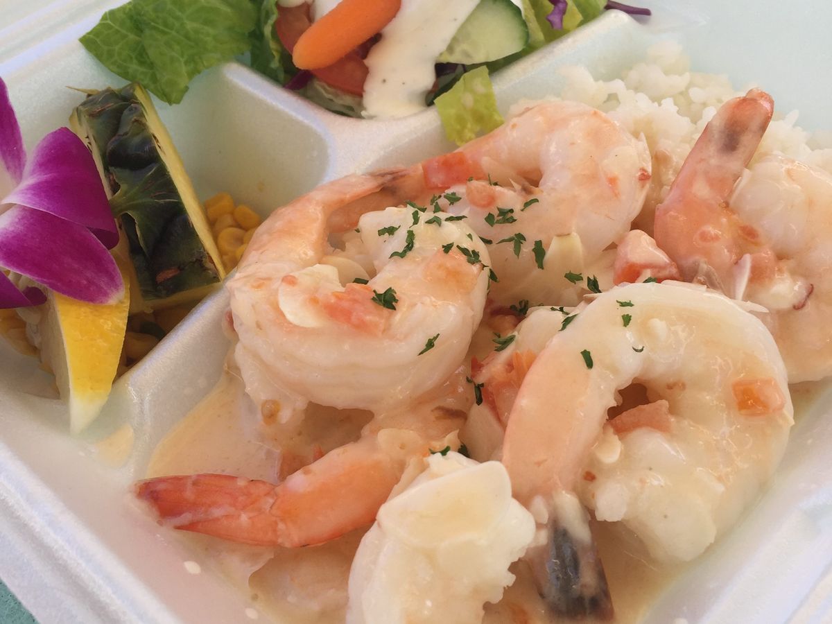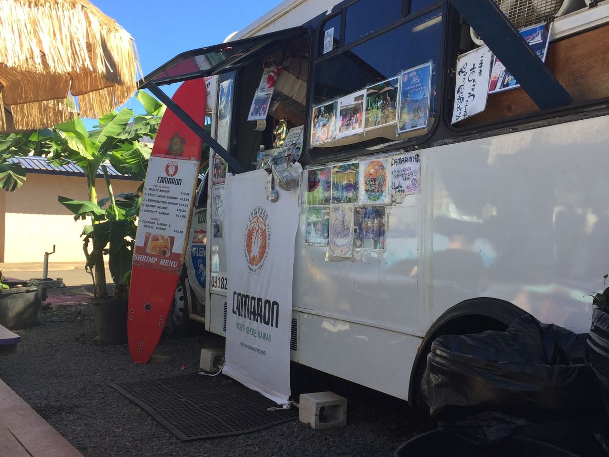ホテルでピックアップしてもらい、いざノースショアに途中ドールプランテーションに寄りハレイワに到着、私は乗馬前にお目当てのカマロンのガーリックシュリンプ目指してGO-
