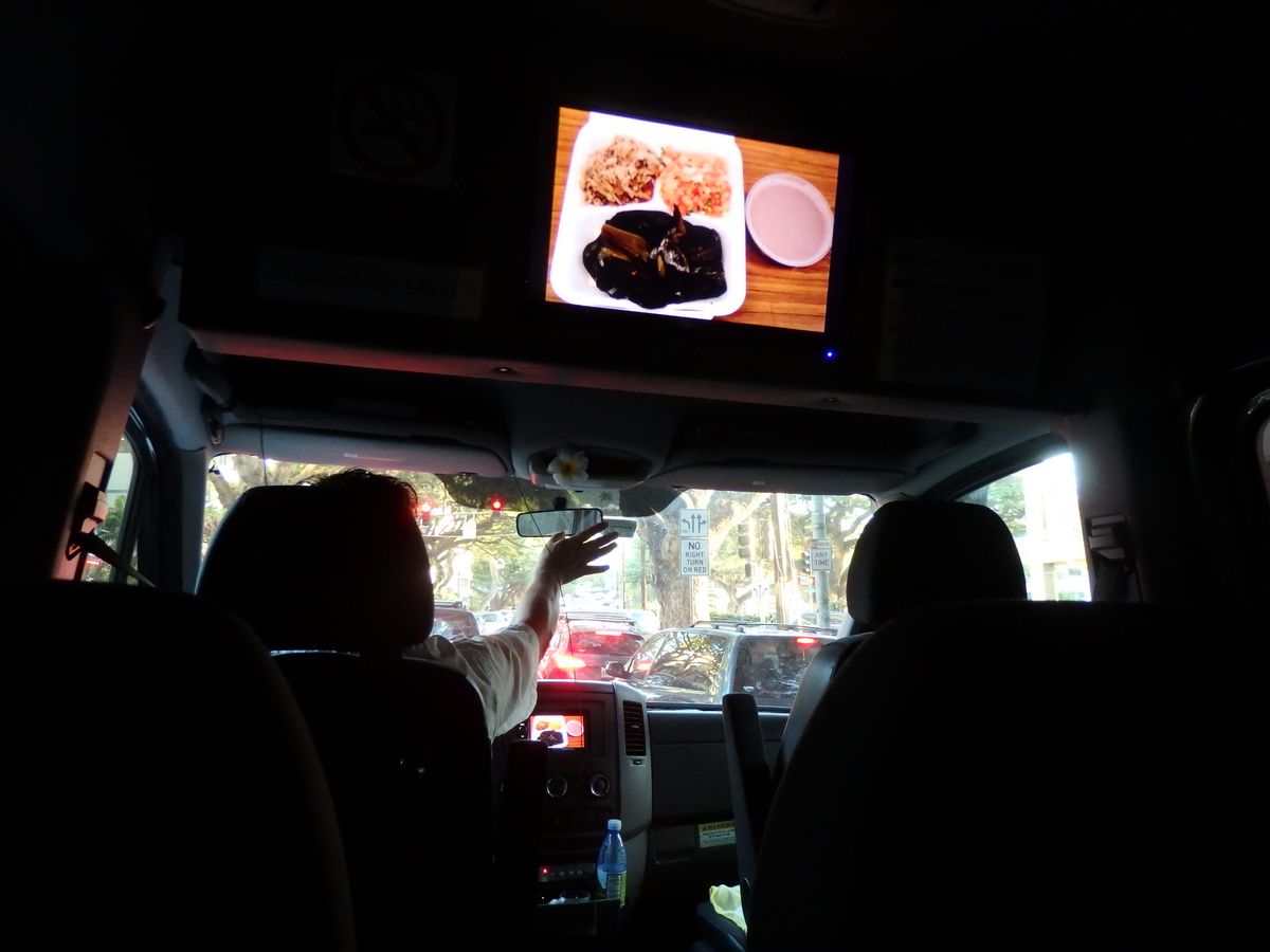 ドライバー兼ガイドの坂井さんは、車の中でもモニターで映像や音楽を駆使して、ハワイの事をわかりやすく説明してくださいました。ハワイの風土、花、鳥、食べ物、私が好きなハワイ神話もまじえて。