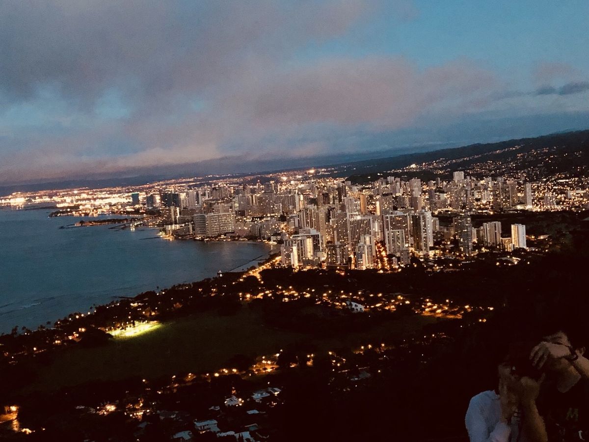 早朝から、ダイヤモンドヘッドを登り、素敵な夜景、朝日を迎えることが出来ました。