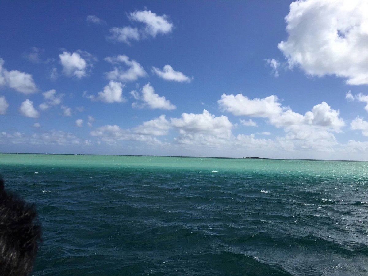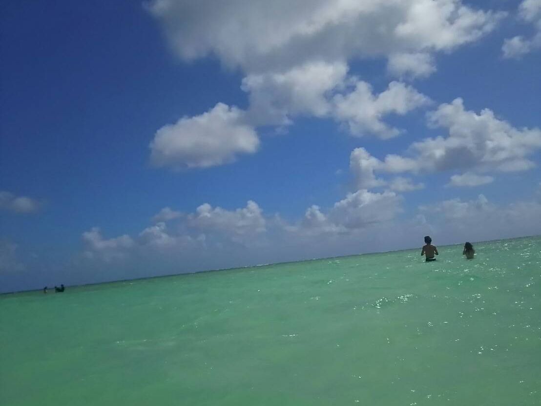 サンドバーは潮の満ち引きの関係で腰くらいまで水がありましたが、海のまんなかを歩けて感激しました。とにかく景色が最高で、空も海も美しかったです。