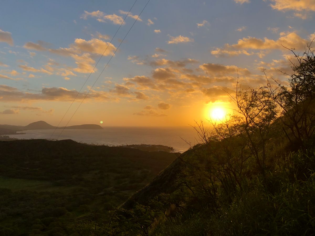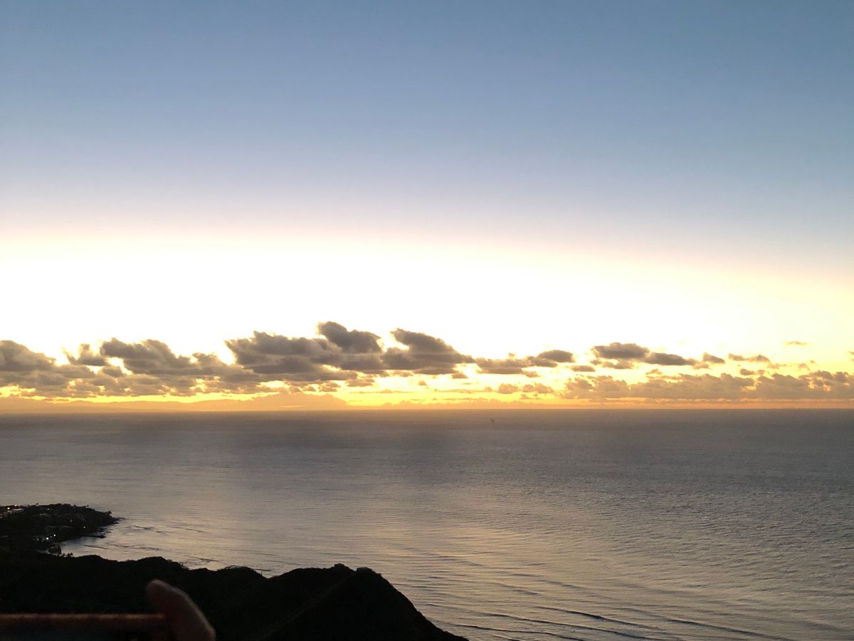 朝5:25に眠い目を擦りながらホテルを出発し、ダイヤモンドヘッド登山へ行きました!これで3回めの登山になります。今年は天気も良く最高の登山日和になりました。登山開始時間が多少早く、まだ真っ暗でスマホのライトを頼りに登って行きました。頂上到着前の階段に苦しめながらも何とか6:30に到着しました。日の出時間が7:09だったので、待つこと約40分、感動の今年はじめての日の出を見ました。何度見てもここからの日の出は感動します。充分満足したあとに下山をし、マラサダの美味しいパンも良かったです!