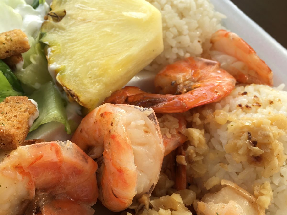 ガーリックシュリンプもパンケーキもマラサダも食べられて大満足です!!