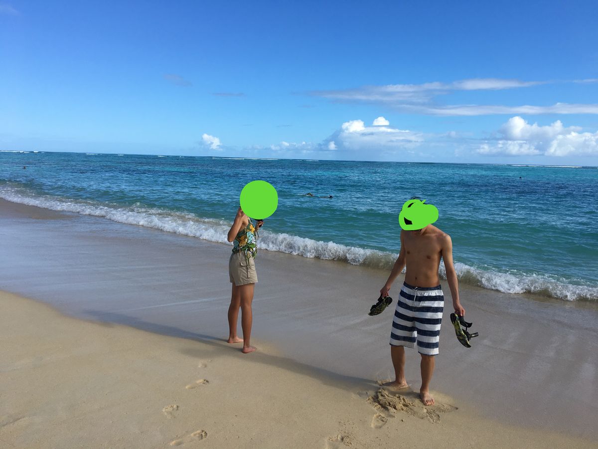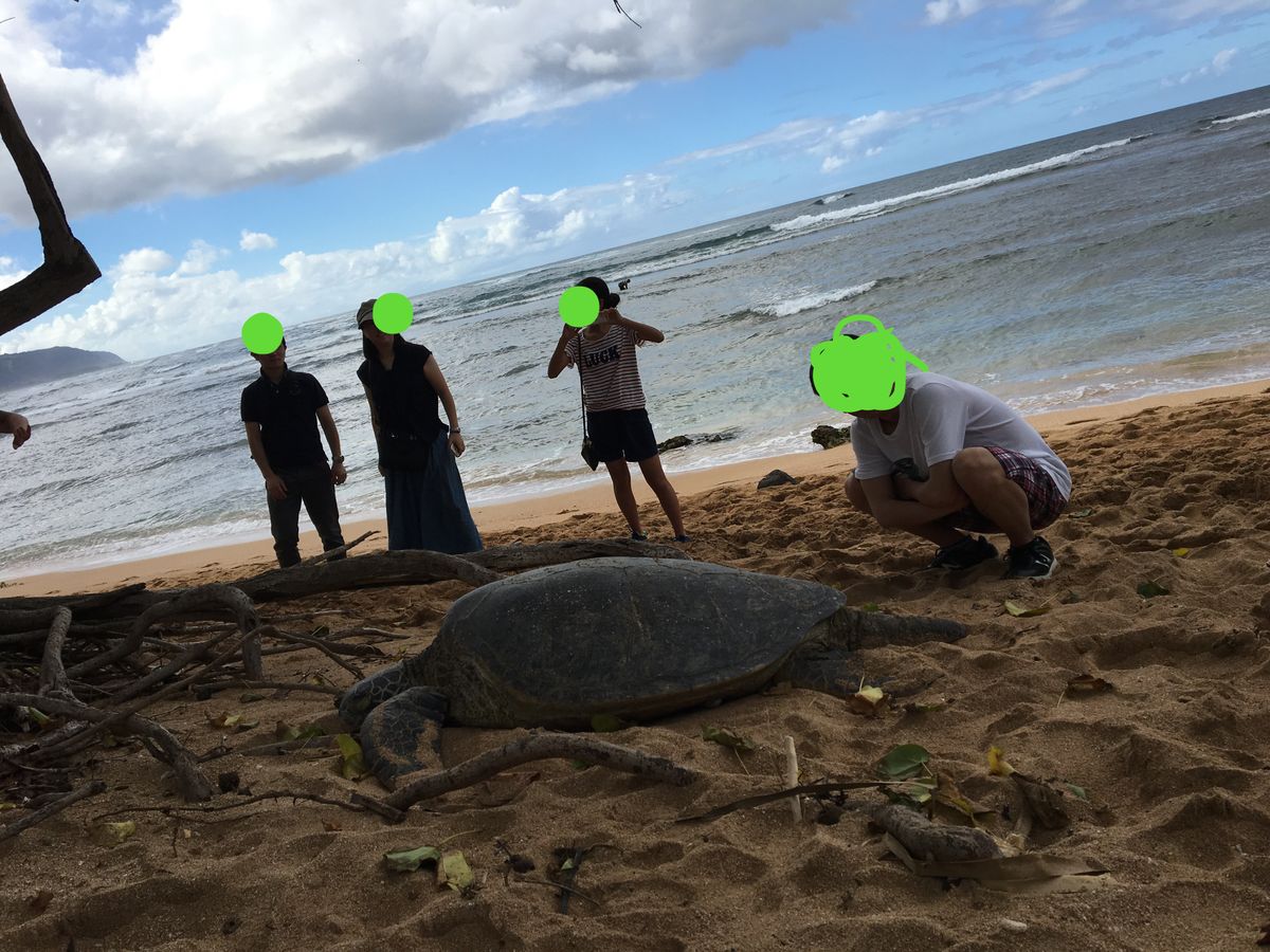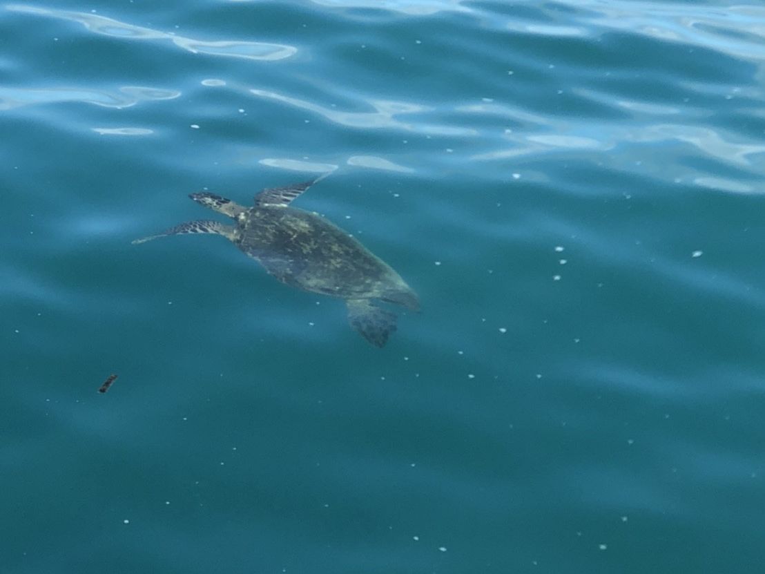 アリィビーチでは、波も高いので期待出来ないと言われていましたが、大きなウミガメが1匹いました。受験成功や家族の健康など幸運のウミガメにたくさん祈りましたよ。
