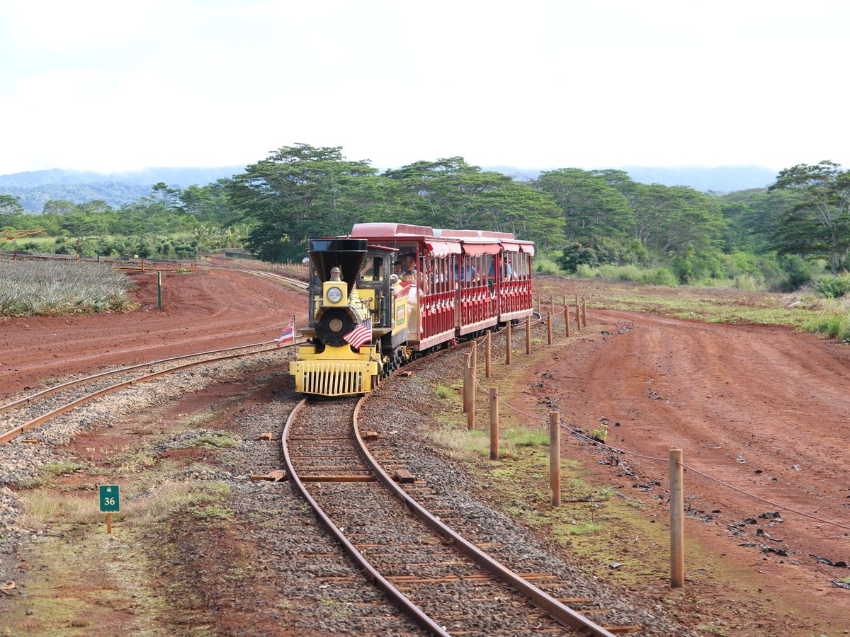 子どものためにトレイン乗車。パイナップルソフトを4人でシェア。