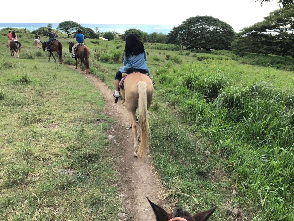 ガイドさんは英語のみです。乗馬途中で下の子供が少し泣いてしまったのですが、日本語が通じなくガイドさんになぜ泣いているのか伝えれなくて少し困りました。乗馬じたいは楽しかったです。