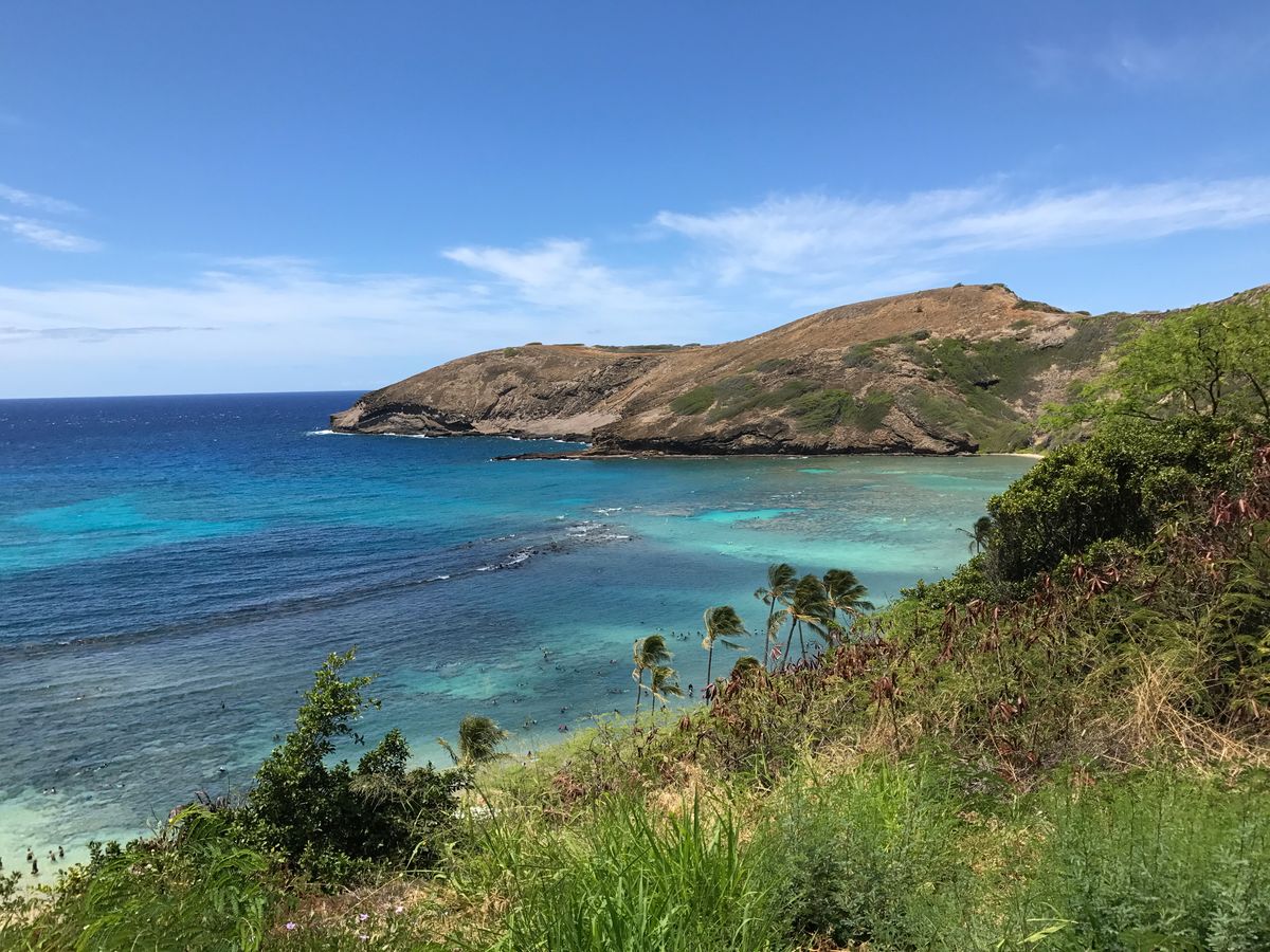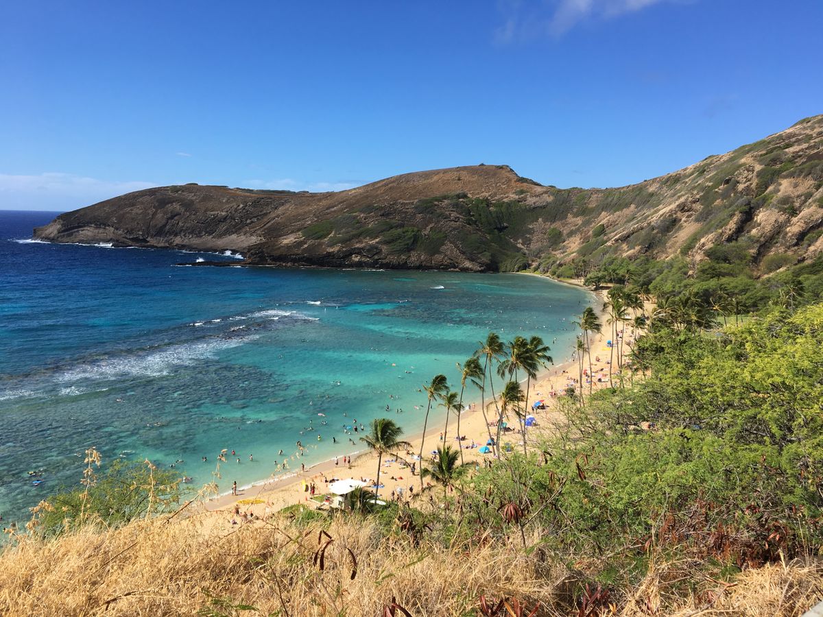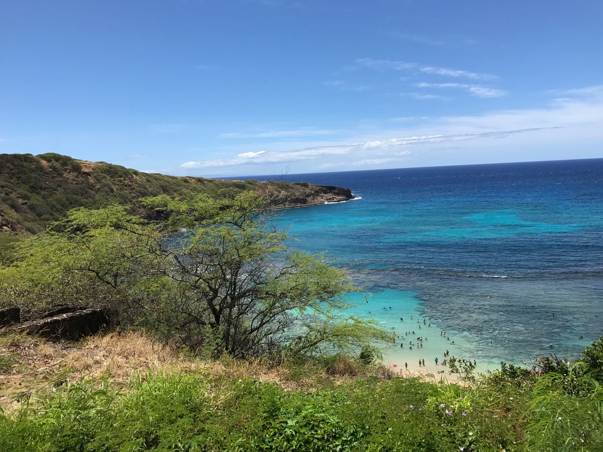 ホテルへ戻る途中は、ハナウマ湾など観光スポットに立ち寄り、青空と海と珊瑚の美しい色がとても素敵でした。