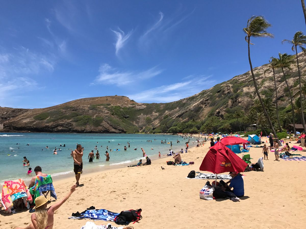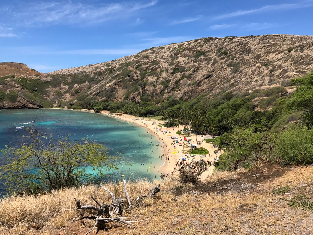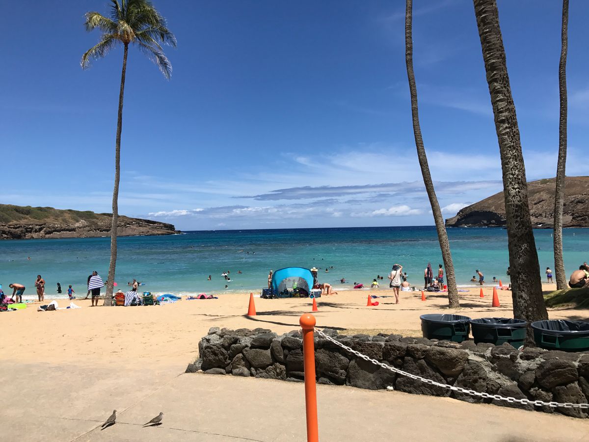 ホテルへ戻る途中は、ハナウマ湾など観光スポットに立ち寄り、青空と海と珊瑚の美しい色がとても素敵でした。