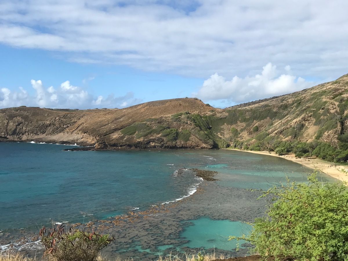 上から見るハナウマ湾はとても蒼くて綺麗でした!
