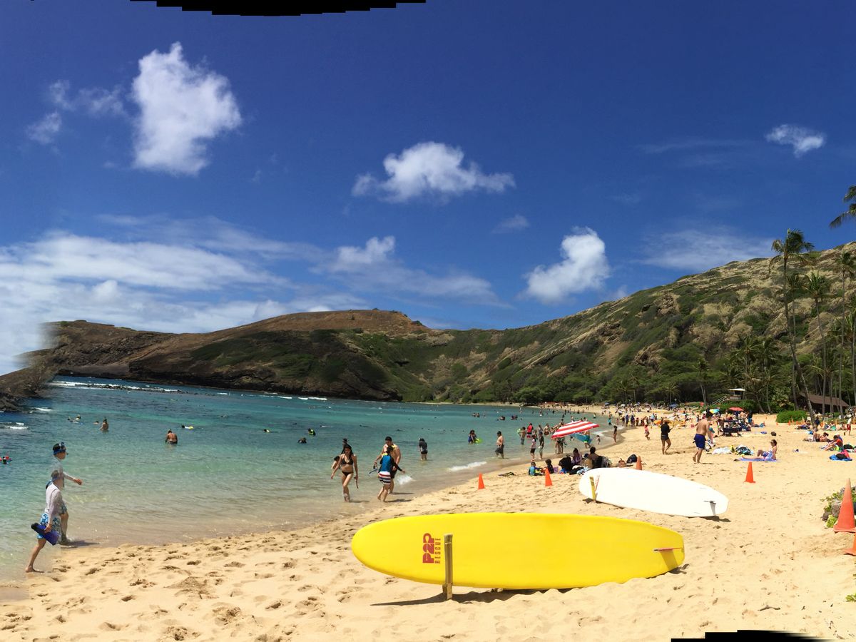 ハナウマベイはとても綺麗で魚がたくさんいて子供たちもシュノーケリングを楽しんでいました。日影がないのでパラソルを借りた方が良かったと思いました。