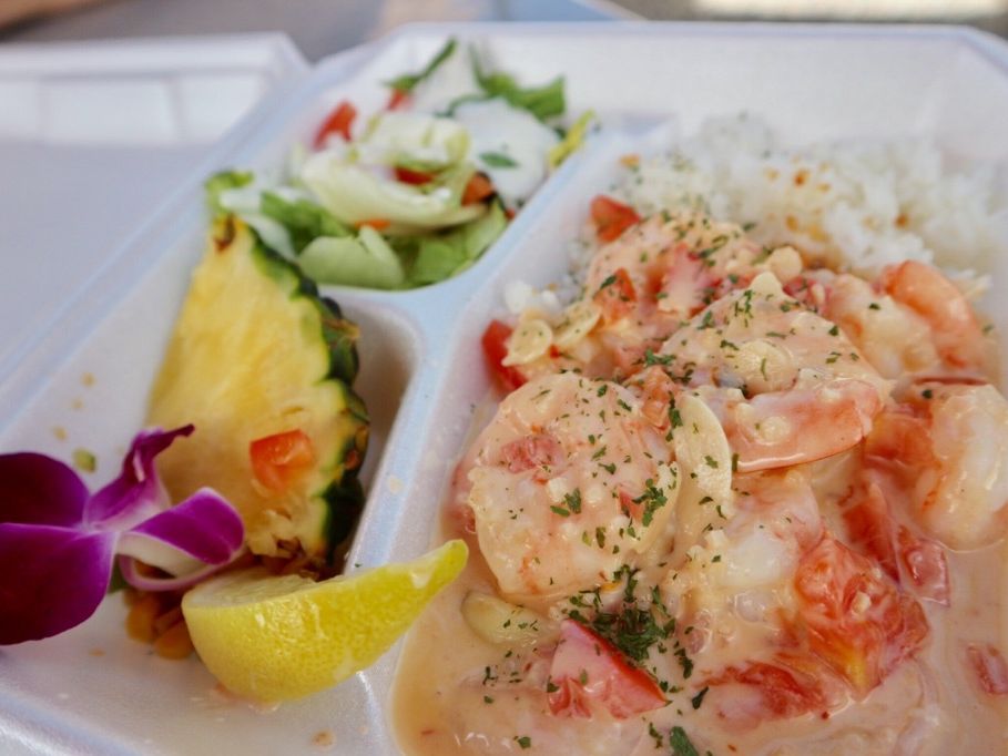 海ガメビーチでは1匹の海ガメに出会うことができ、ハレイワでは、ヒロさんがガーリックシュリンプの店に事前に電話をして予約をしてくださっていたので、店に着いたタイミングですぐにランチ!カンペキ&大満足のツアーでした。