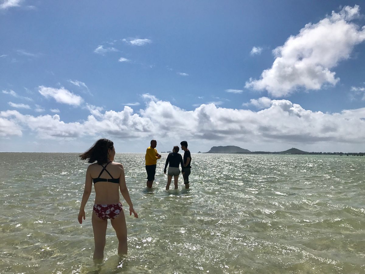 ツアーは16名での参加でした。ガイドさんは常に参加者の様子を見ていてくれて、亀が泳いでいる場所やシュノーケルのベストポイントに誘導してくれます。サンドバーは膝下までの浅瀬でとても綺麗でした!娘はシュノーケルが初体験でしたがサンゴ礁や魚や亀を見ることができて、大満足で大喜びしていました。