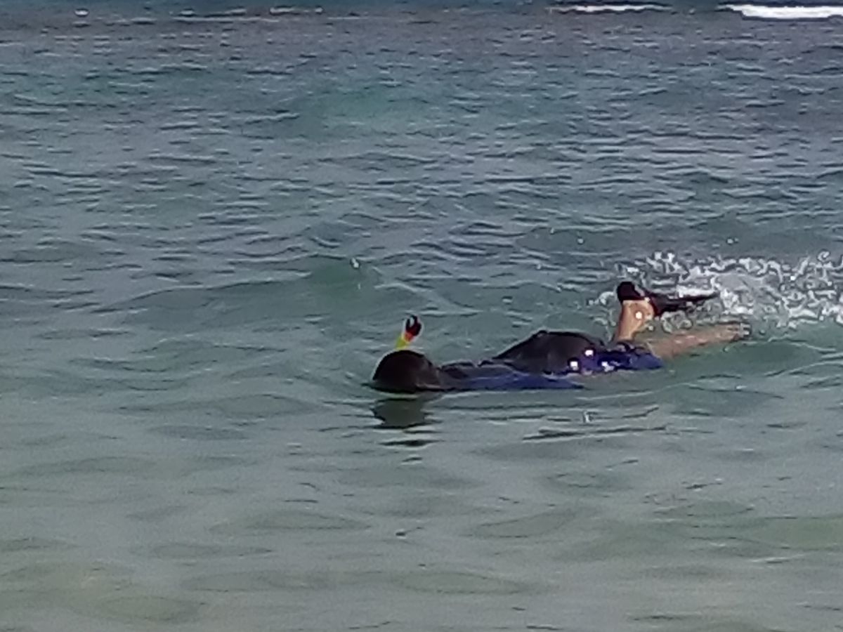 メインのサンドバーですが、残念ながら時期が悪く胸辺りまで海水があり、イメージとは程遠い感じでした。