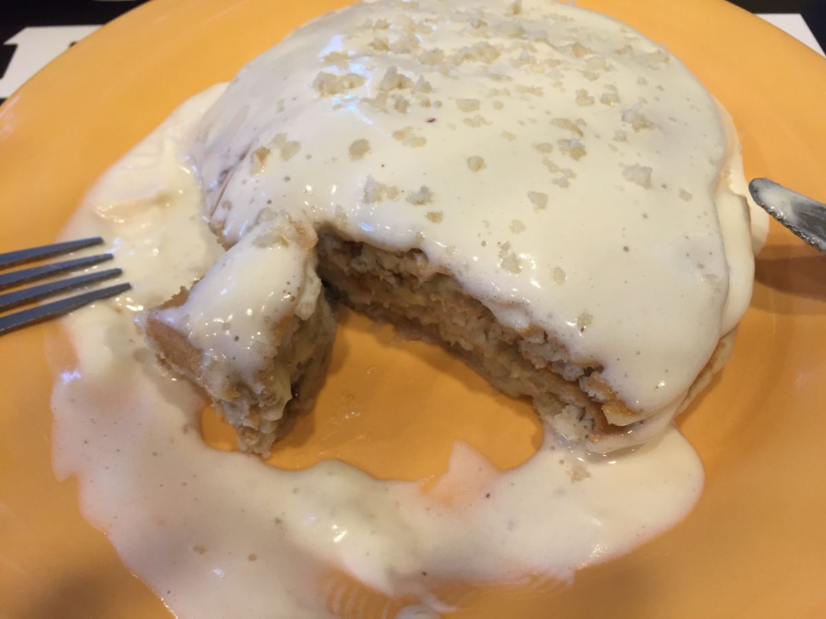 ②ブーツアンドキモズではマカデミアパンケーキしか注文できないかと思いきや、美味しいオムレツも注文でき2人でシェアできました。