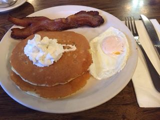 量も適量で、甘いパンケーキとしょっぱいベーコンが絶妙でした。