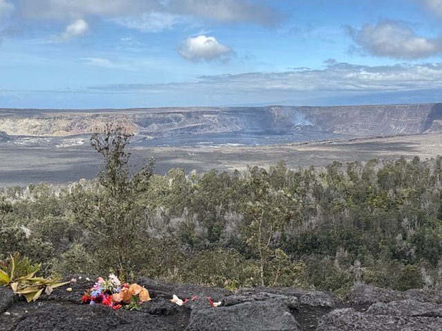 朝4時過ぎにピックアップしてもらって、空港へ。チケットを受け取り、説明を聞いて、自分たちでゲートへ。飛行時間は40分弱であっという間にハワイ島。ミニバスでドライバー兼ガイドのショージさんが迎えに来てくれて、ツアースタート。火山が大好きで、なんと火口から15分の所に引っ越してきたショージさんの話はとても興味深くて面白かったです。