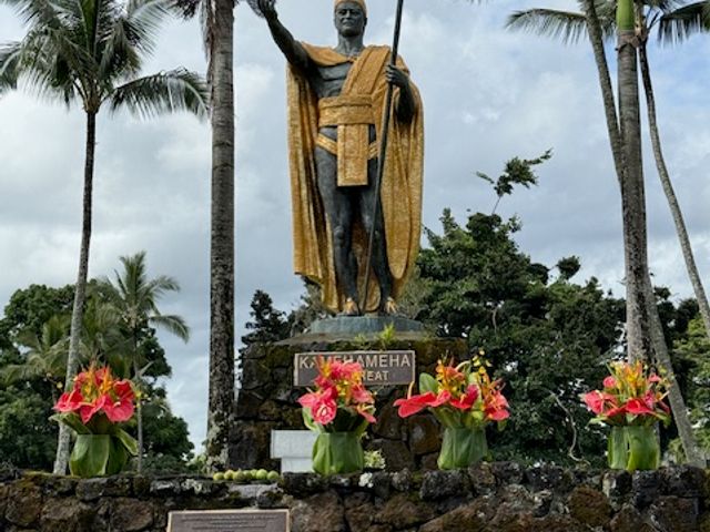 前から見たいと思っていた日立の樹とカメハメハ大王の像をやっと拝むことができました。出雲大社の分院がハワイにあることは初めて知りました。