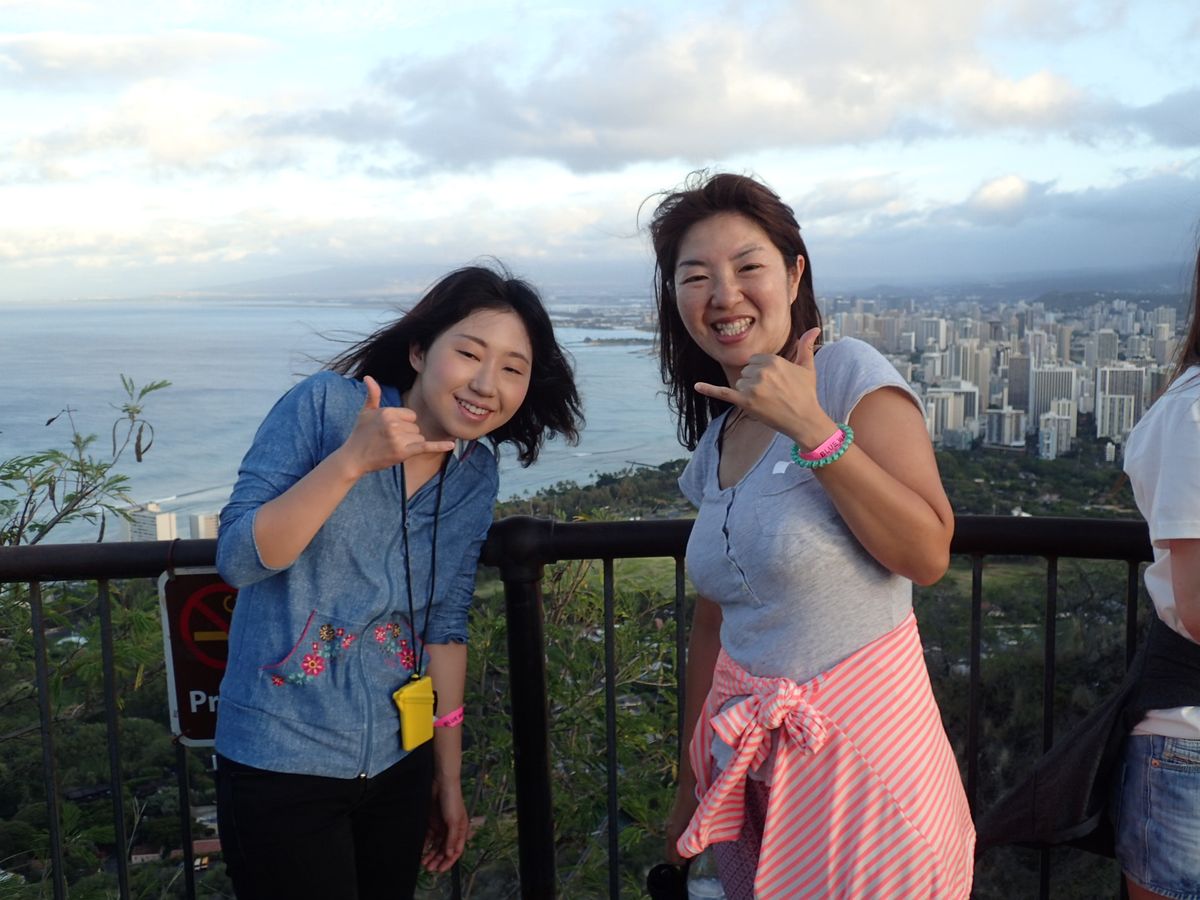 ダイアモンドヘットからの日の出は、雲がちょっとあったけど、キレイでした。登る途中は、立ち止まれるスペースや写真スポットがあり、自分のペースで登れます。ゆっくりと登っても30分程度で、1時間位で戻ってこられます。頂上からは、ワイキキビーチが一望です。とってもキレイな眺めです。気軽に登れるので、おすすめです。登り終わったあと、サービスで記念撮影をしてもらえました。