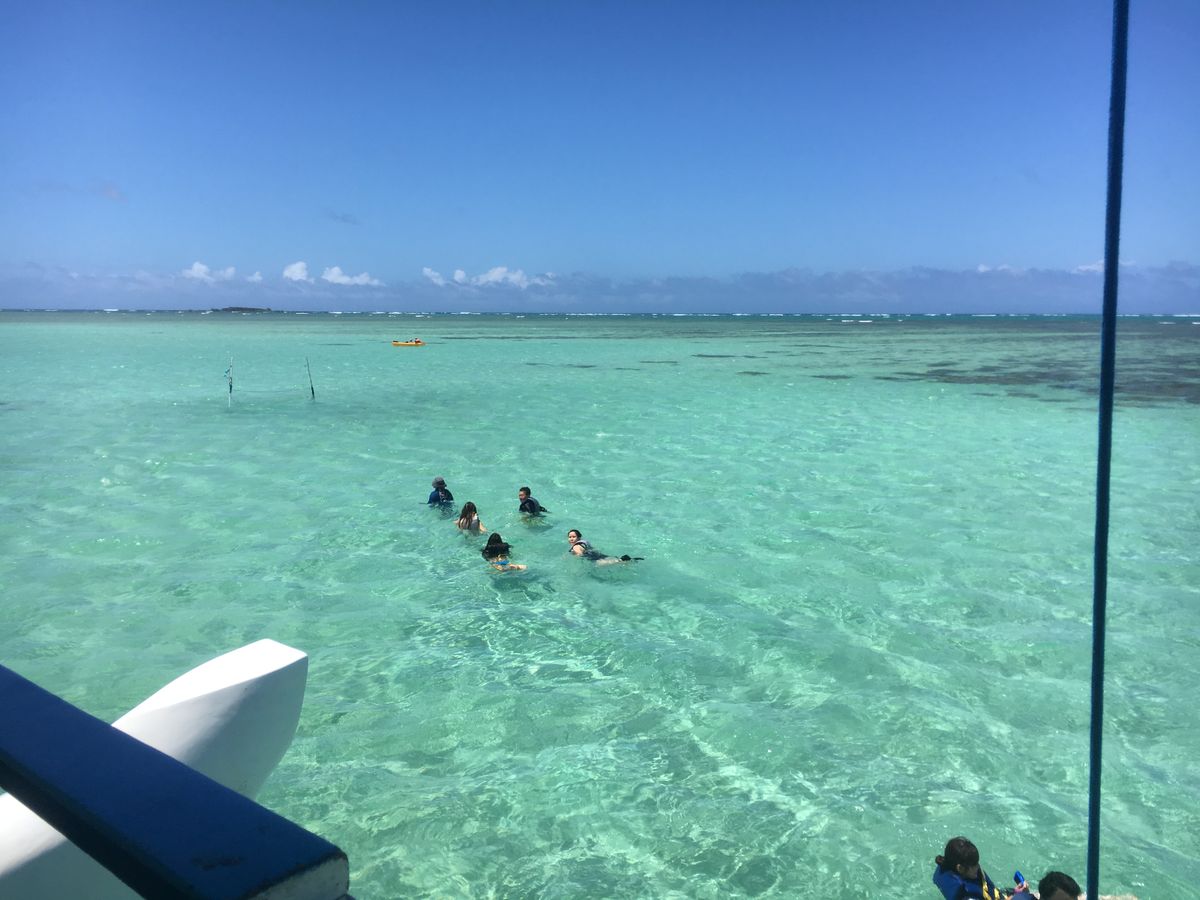 出発時間を過ぎているのに、20分くらいは待たされた。サンドバーは遠目から見てもわかるほど綺麗だったが、想像していたよりも深く、水深100cmくらいはあった。あと水温が意外と低い。ウミガメウォッチングはちょっと遠くて、運が悪かった。シュノーケリングではクラゲに刺されて途中で断念し、もう少し楽しみたかった。他にも刺されている人がいた。そのこともあってなのか、船長に気に入られたからなのかは不明だが、帰りに操縦をさせて貰えたのはラッキーだった。特等席からの景色は良かった。