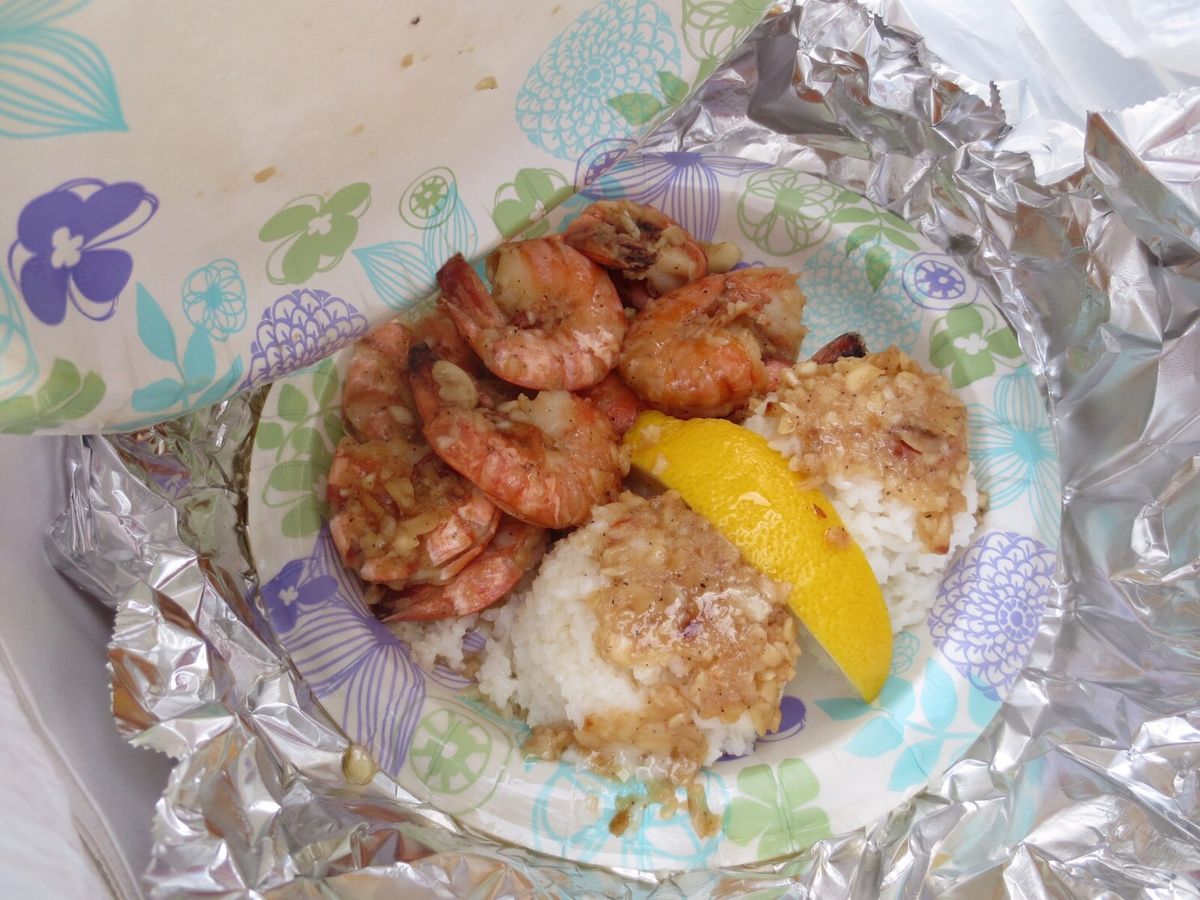 ノースショアではお目当のガーリックシュリンプを食べるつもりだったのですが、車から降ろされた場所がお店までまたまた徒歩20〜30分離れた場所で、こちらも自由時間が少ない上に人気のお店のため注文してからかなり待たされ…泣く泣くテイクアウトに変更しそれを持って集合場所まで走る羽目になりました。