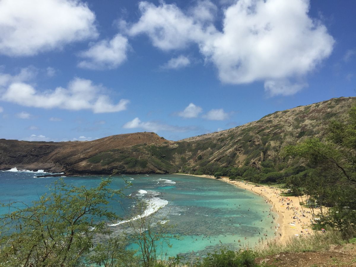 そして、ハナウマ湾ではビーチへ向かう前にビデオを見ながら注意事項の説明があり、その後歩いてビーチへの坂道を下りました。坂から見える海はとても綺麗でテンションもMaxに!!